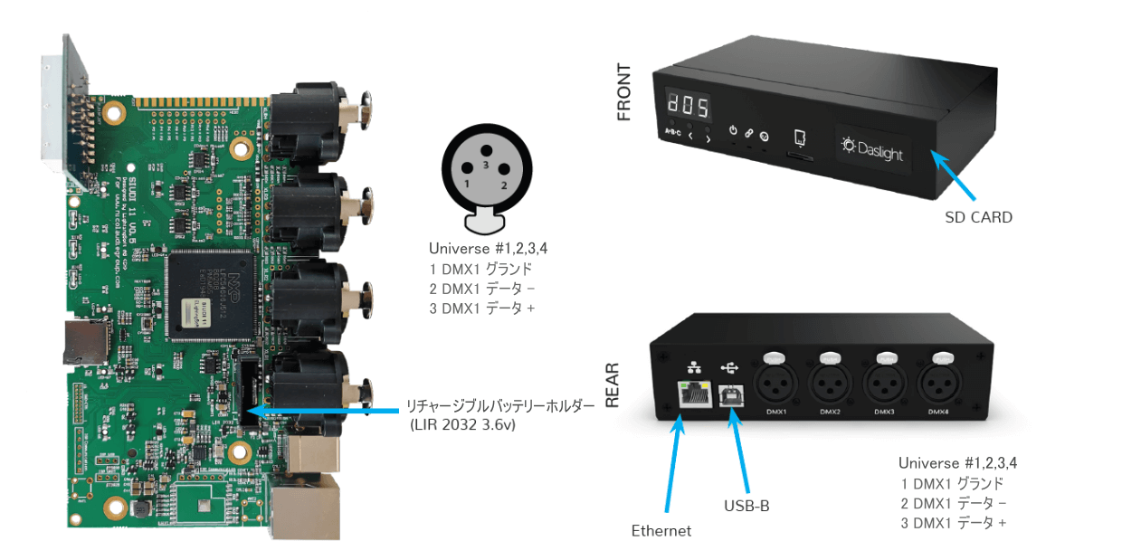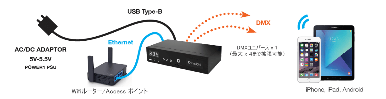 - スタンドアロンモードでDMX512ユニバース x 1