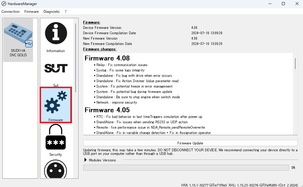 アップデートが終了したら、Hardware Managerを終了し、Daslightを起動してください。